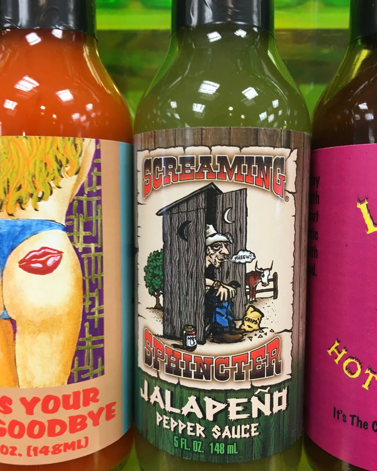Judging by the names of the sauces, if you are a 14-year old boy, or at least think like a 14-year old boy, you can have a career naming hot sauces. Sphincter Snapper. Ass Blaster. Innard Igniter. The fourteen year olds who follow current events have brought us Weapons of Ass Destruction, the Feel the Bern, and the We Shall Overcomb. Hilary Clinton doesn’t rate a hot sauce. Sooner or later NBC’s Chuck Todd will comment on what that the lack of hot sauce honors means in terms of California being safely in the blue state column.